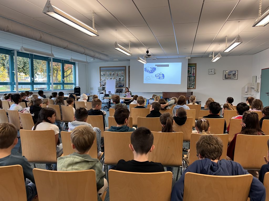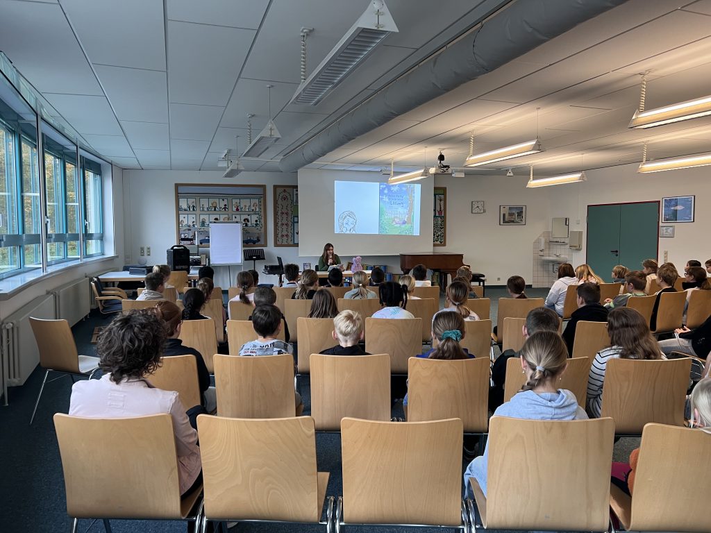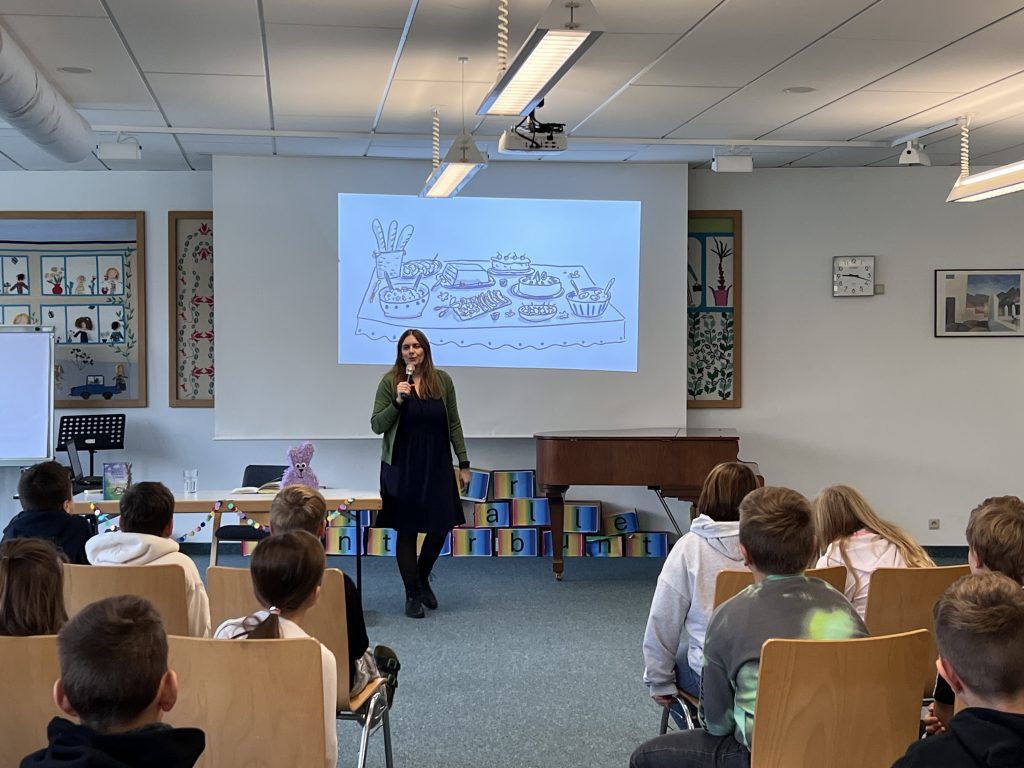 Am 15.10.2025 besuchte die Autorin Anna Maria Prassler unsere Schule und stellte ihr neues Buch „Keine Party ist auch keine Lösung“ vor. Die Schülerinnen und Schüler der 4. Klassen durften dabei eine spannende und unterhaltsame Lesung erleben.