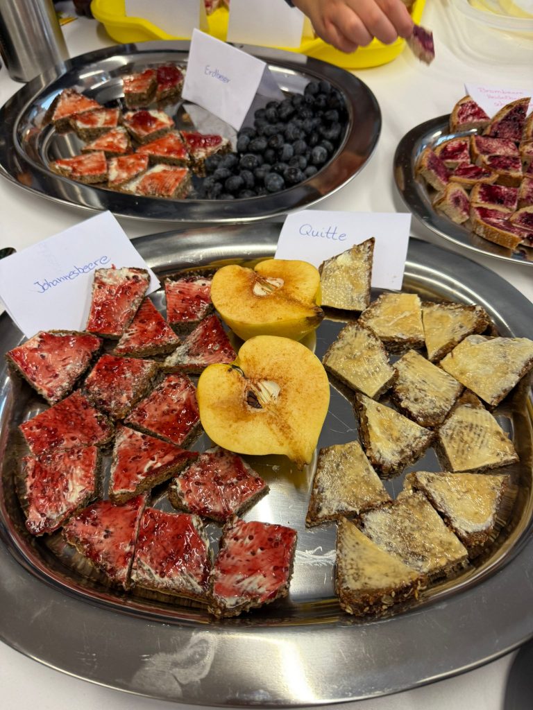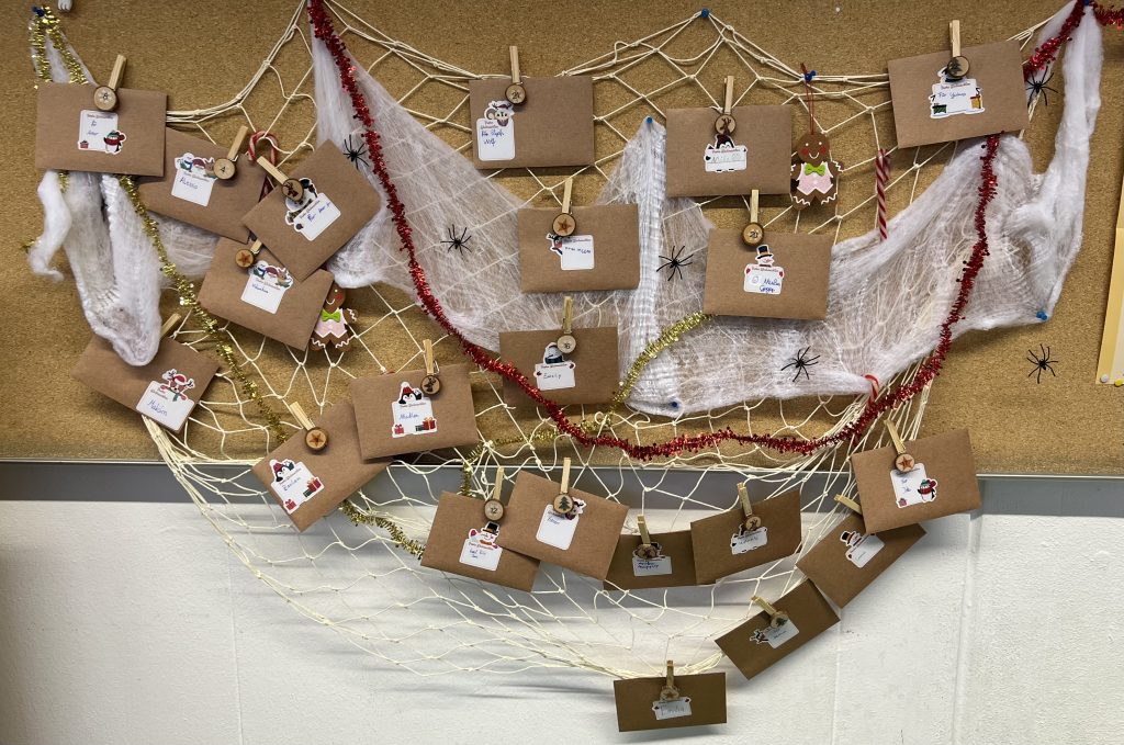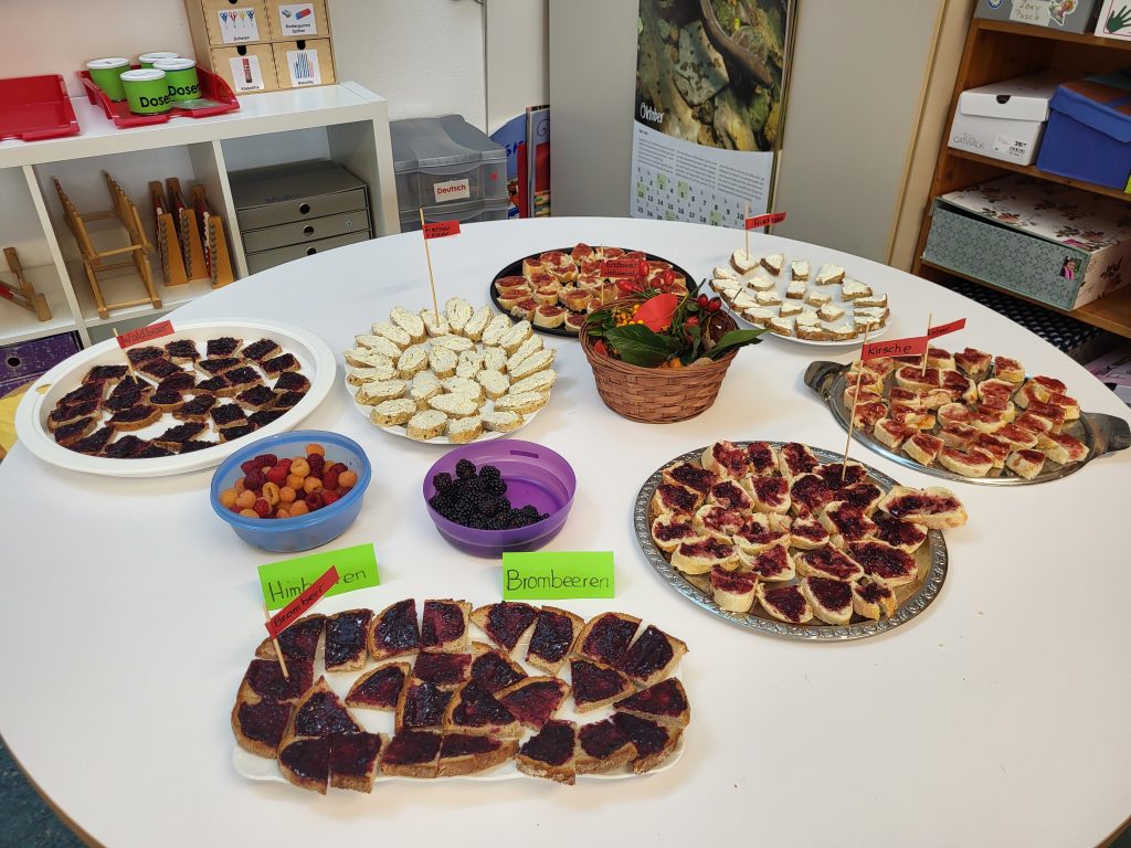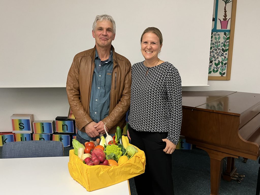 Später entdeckten die Kinder vor dem Klassenzimmer einen Sack mit Äpfeln, Mandarinen, einem Schokololli sowie einem Spiel für die Klasse.