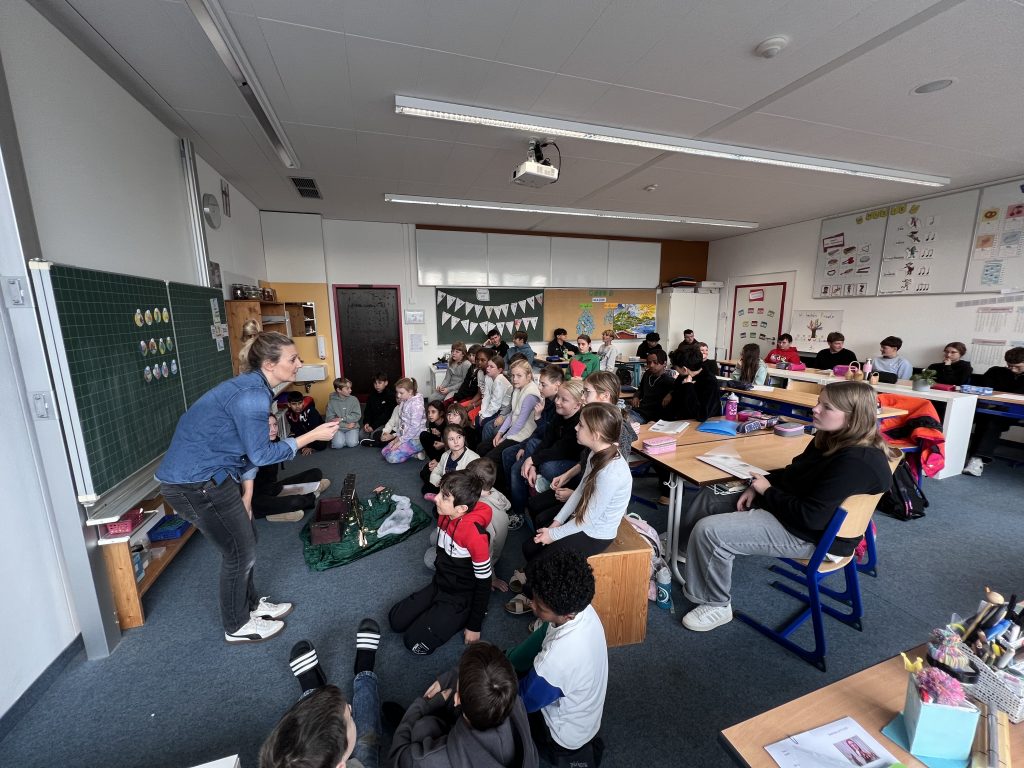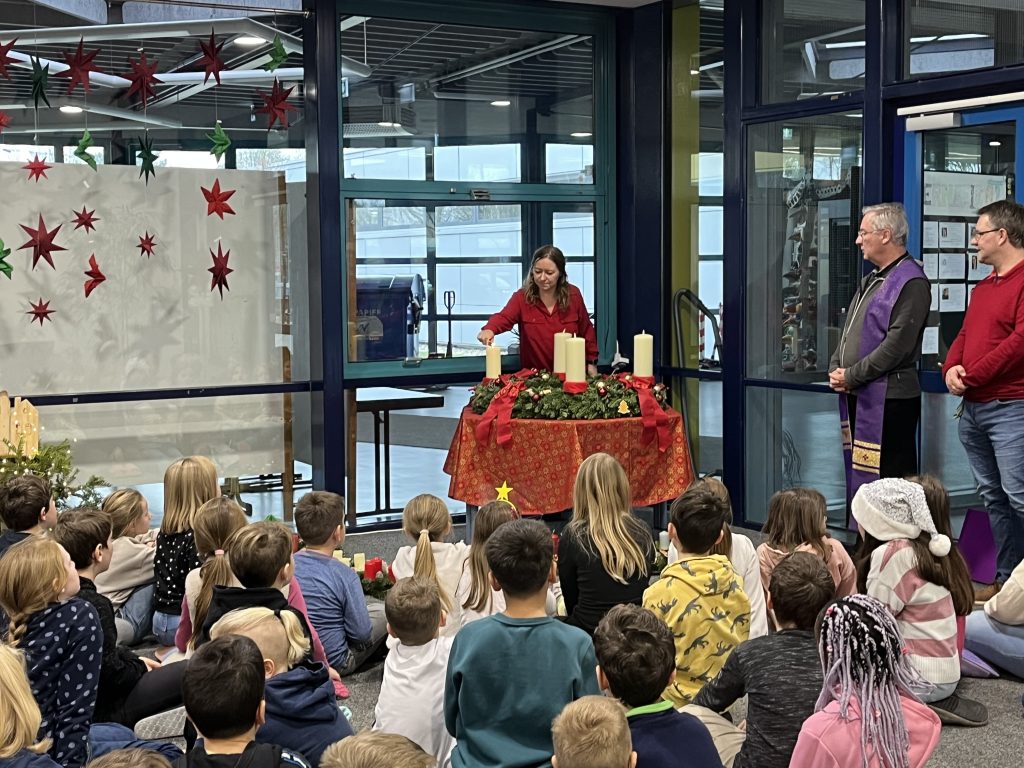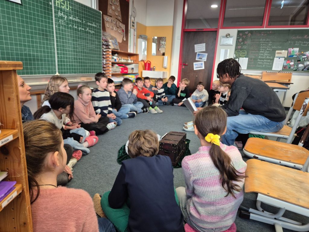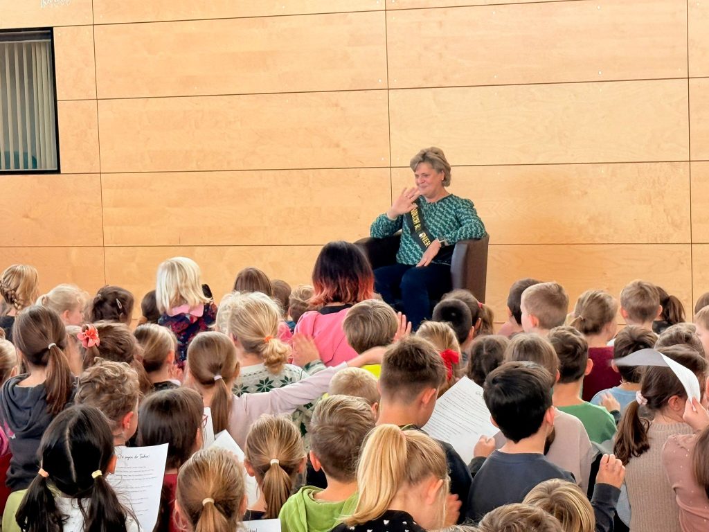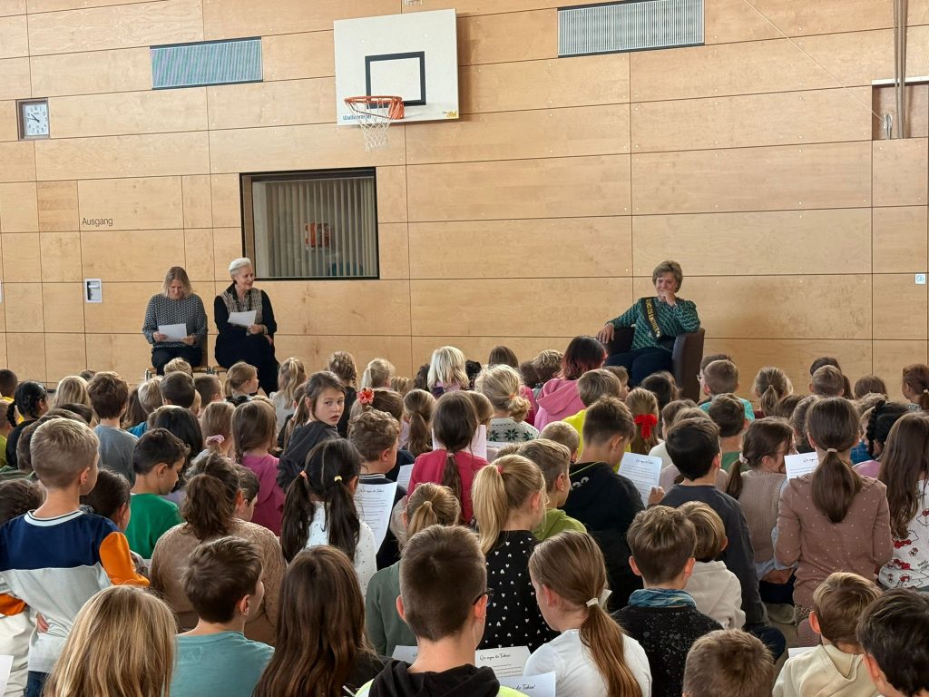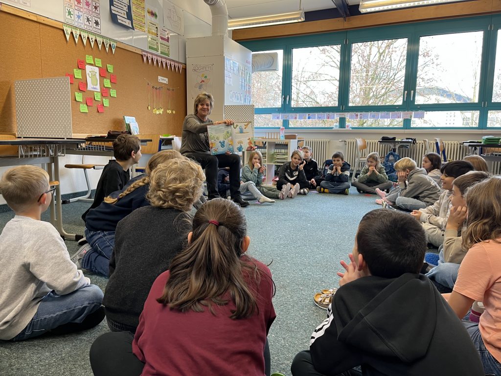 Auch in diesem Jahr hat uns wieder der Nikolaus besucht. Nachdem er musikalisch von den Kindern und durch Frau Korner bzw. Frau Sturm begrüßt wurde, las er den Kindern aus seinem goldenen Buch vor. Er hatte sehr viel Positives zu berichten beispielsweise, dass die Erstklässler schon richtig schön in die Zeilen schreiben können, die Zweitklässler super leise arbeiten können, die Drittklässler sehr freundlich und hilfsbereit gegenüber den Lehrkräften sind und die Viertklässler sich gegenseitig bei schwierigen Aufgaben toll unterstützten. Den ein oder anderen Verbesserungsvorschlag hatte der Nikolaus allerdings auch parat. Er legte den Kindern ans Herz pünktlich aus der Pause zu kommen, Streit friedlich zu klären, im Unterricht leise zu sein und gut zuzuhören sowie Arbeitsaufträge genau zu lesen.